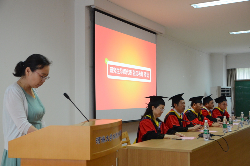 导师代表张洁老师借用泰戈尔的话“无论黄昏把树的影子拉得多长,它总是和根连在一起”,同样地,无论今后毕业生们走得多远、飞得多高,母校永远是他们坚强的后盾,始终相信和期待他们事业有成。
