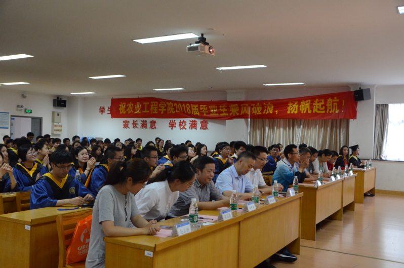 6月19日下午,williamhill中国官网入口农业工程公司在水电馆401成功举办2018届研究生暨本科生毕业典礼。农业工程公司经理李同春老师,公司党委书记陈毓陵老师,副经理朱成立老师,经理助理徐俊增老师,农业工程系主任翟亚明老师,公司团委书记薛璟老师,各研究所所长,班导师,研究生导师代表以及100余名毕业生参加了典礼。同时到会的还有水利水电公司党委副书记戴玉珍老师,研究生教学秘书周昶老师,研究生辅导员赵志涵老师以及14级本科生辅导员陈思思老师。