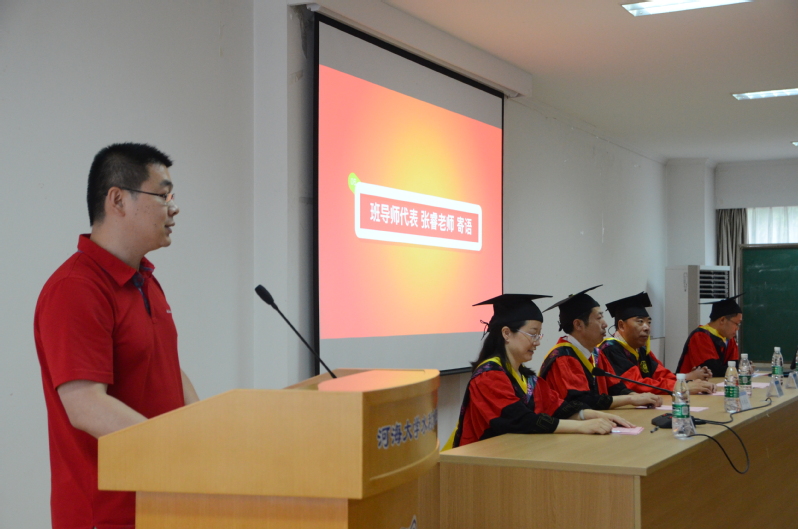 班导师代表张睿老师回忆了四年来与同学相处的点点滴滴,并寄语毕业生大爱无疆,在复杂纷纭的社会中,也要怀有一颗宽容仁爱之心;大智若愚,漫漫人生路上,取大智慧、舍小聪明,低调做人,谨言慎行,大智若愚,韬光养晦;大任无怨,志存高远,脚踏实地,勇敢肩负起时代赋予的重任。