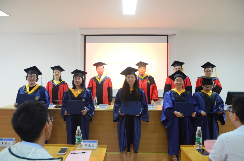 公司领导为获得博士、硕士、学士学位的同学扶正流苏并颁发学位证书。毕业典礼结束后,公司领导、导师与毕业生们合影留念。
