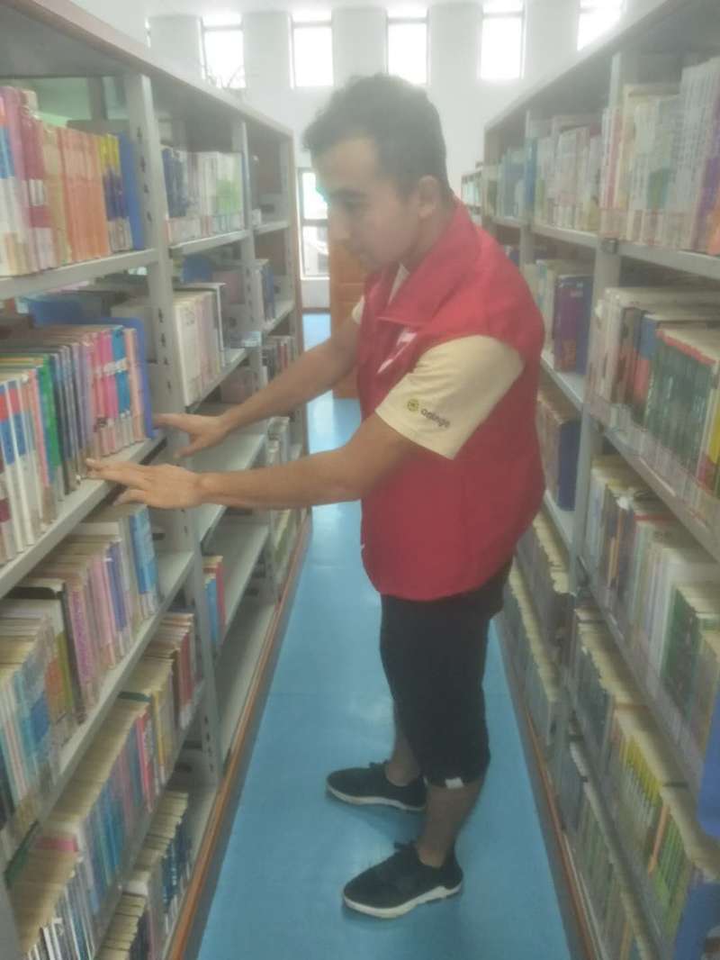 7月4日,志愿者们开始了第二天的志愿服务活动。来到江宁区图书馆,他们从工作人员那里分配到了自己的工作任务,便开始帮那里的工作人员整理书籍。