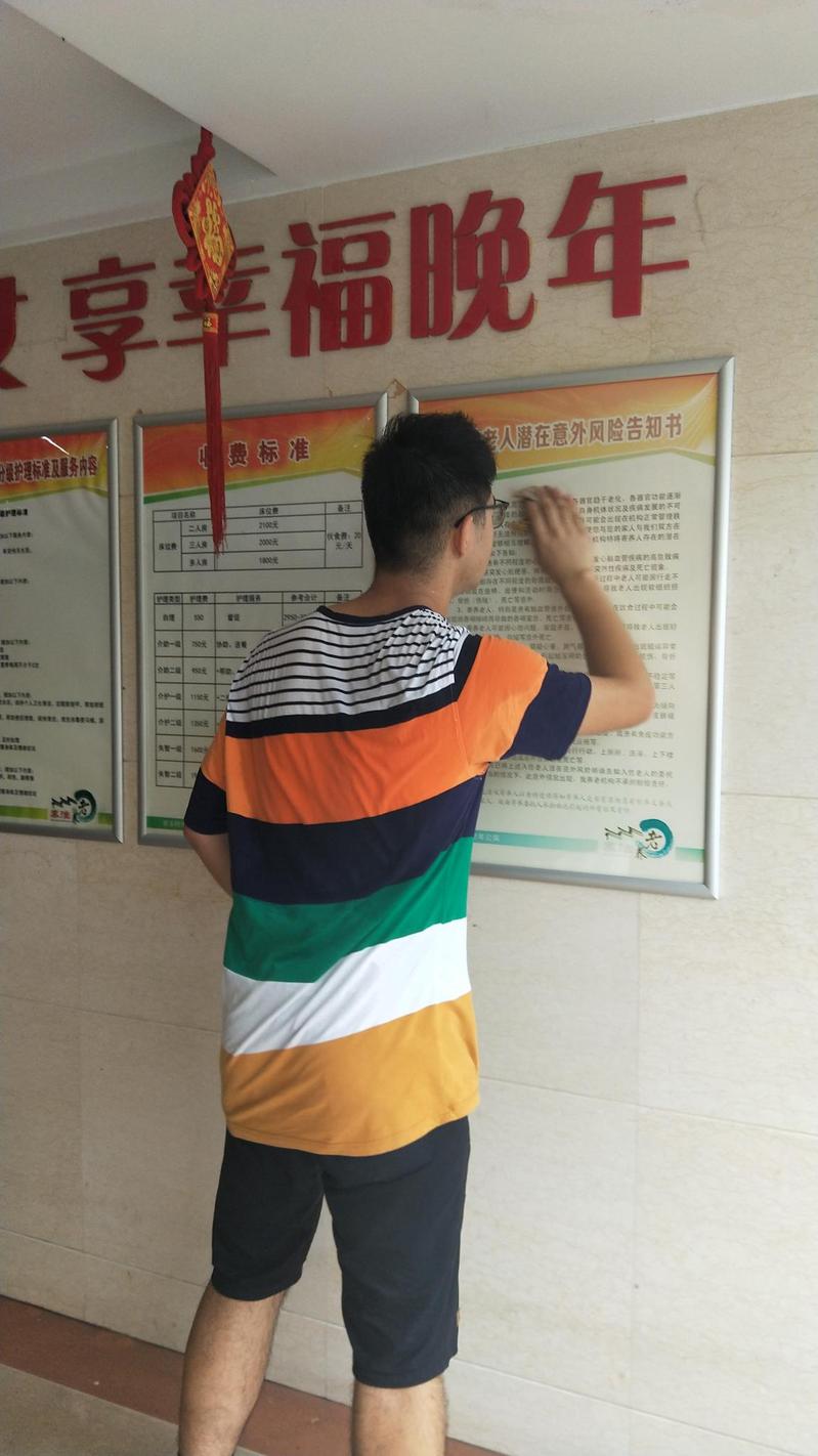7月3日,南京市欢乐时光敬老院服务活动––社会服务活动团来到了欢乐时光敬老院,开始了第一天的实践活动。实践团成员来到敬老院,在队长的带领下来到经理办公室,与经理进行了沟通,之后,在相关工作人员的引导下,我们对敬老院进行了认真的打扫,我们对楼梯,窗台,以及走廊都进行了认真的清洁,并帮助老人打扫了他们的房间,虽然实践团实践团成员都有些许疲惫,但大家的内心都是充实的。之后的几天,实践团成员不仅帮助敬老院完成了卫生打扫工作,而且对敬老院的老人进行了心理上的关怀与慰问。