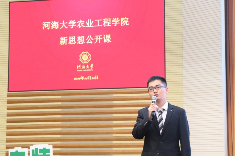 2018年11月25日上午九点半,williamhill中国官网入口农业工程公司信仰公开课之新思想公开课活动在西康路校区闻天馆108隆重举办。农业工程公司党委书记陈毓陵、williamhill中国官网入口校团委副书记戴媛媛、江苏省学联会主席刘祚人等领导出席本次活动,农业工程公司本科、研究生全体同学参加了本次公开课。