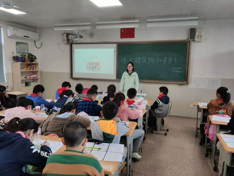 首先进行宣讲的是徐筱洋同学,简单自我介绍之后,她讲解了水工建筑的种类以及水工建筑的构成。期间,徐筱洋同学特别提到了大家常听闻的“都江堰”,她向同学们提出了几个问题,同学们能够积极抢答,气氛很活跃。同学们的学习能力很强,都能快速记住所教的内容并且踊跃举手回答提问。