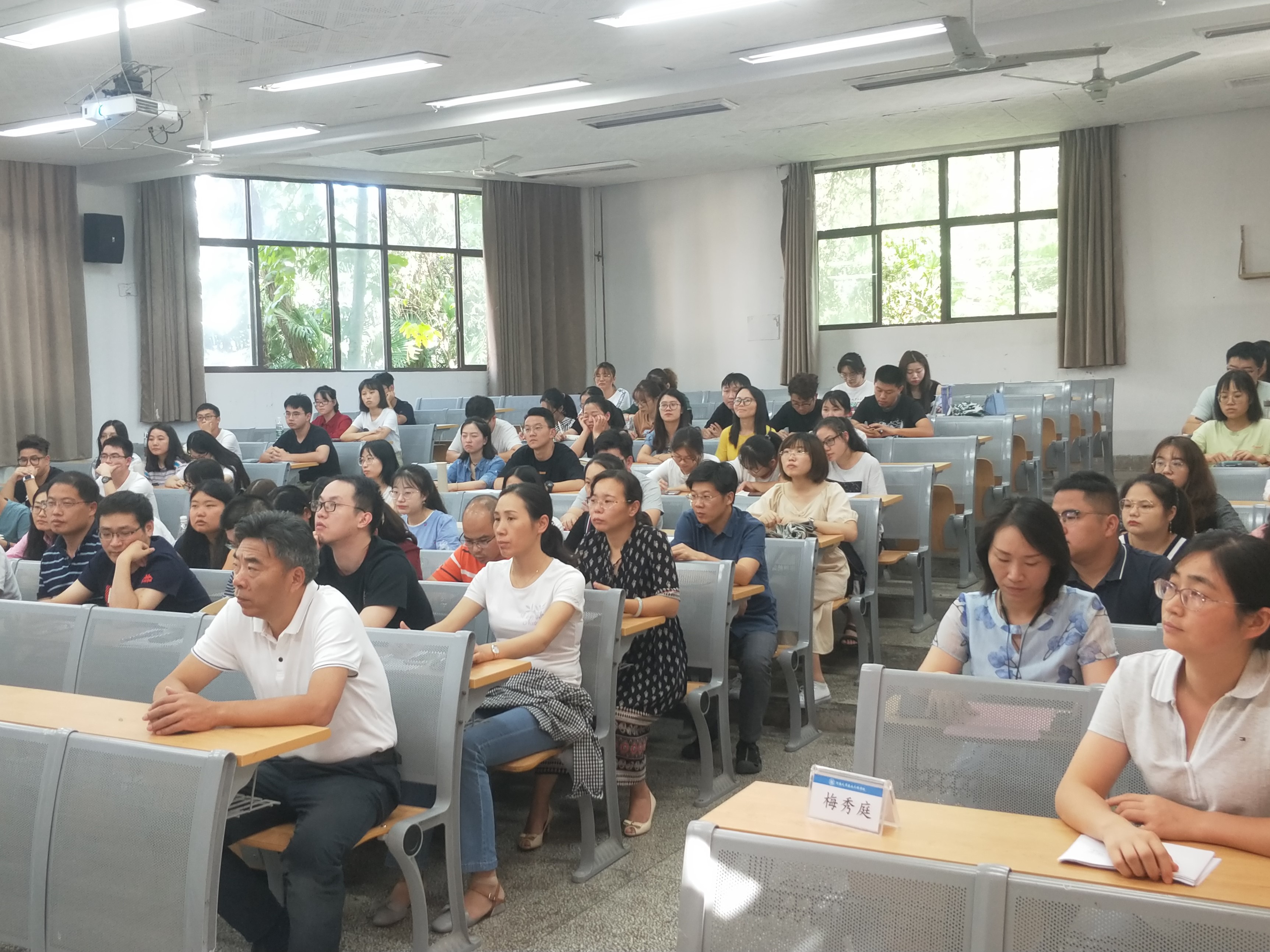 梅教授对《习近平新时代中国特色社会主义思想学习纲要》进行了深入的剖析和解读,从为何重视《纲要》学习,学什么,怎么学三方面作了分享,提出学习《纲要》是深入学习贯彻习近平新时代中国特色社会主义思想的迫切需要。《纲要》紧紧围绕习近平新时代中国特色社会主义思想是党和国家必须长期坚持的指导思想这一主题,以“八个明确”和“十四个坚持”为核心内容和主要依据,对习近平新时代中国特色社会主义思想作了全面系统的阐述,有助于广大干部群众更好理解把握这一思想的基本精神、基本内容、基本要求,更加自觉地用以武装头脑、指导实践、推动工作。梅教授就习近平新时代中国特色社会主义思想产生的时代背景、重大意义、科学体系和核心内容等进行了系统阐释和深入解读,对习近平新时代中国特色社会主义思想体现的理论品格、精神特质与实践担当进行了深入剖析和阐释。