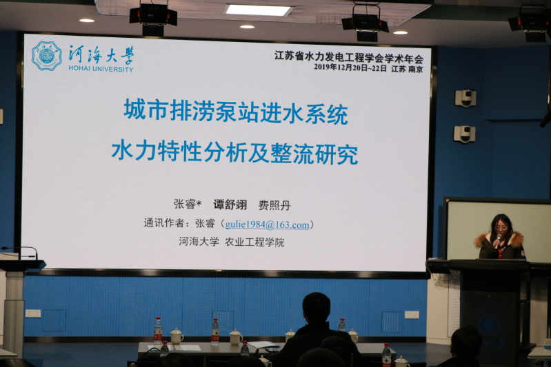 会议围绕“水力机械与系统仿真分析”、“水力机械系统振动及运行稳定性”、“水力机械中的空化、空蚀与磨蚀”、“水能、风能及海洋能开发利用新技术”、“水力机械系统优化及其信息化”、“工程应用中的流体动力学研究”等主题内容开展了交流研讨。江苏省水力发电工程学会理事长朱跃龙教授、南水北调东线江苏水源有限责任公司冯旭松副总经理、扬州大学成立教授、江苏大学康灿教授、williamhill中国官网入口郑源教授、江苏大学裴吉副研究员、江苏航天水力设备有限公司邵春兵副总经理以及江苏省水力发电工程学会水力机械与系统专业委员会主任刘超教授分别做了《南水北调东线工程泵站(群)优化调度关键技术研究》、《南水北调大型低扬程高性能泵站关键技术研究与应用》、《沿江双向流道轴流泵站水力振动流动机理及控制研究》、《阻力型水动力转轮的流体力学问题》、《大型泵站水利信息化与机组高效稳定研究》、《水力机械内流特性及智能优化方法研究》、《新工艺、新材料、新技术在大型水利泵上的应用》、《轴流泵系统研究进展和相关问题》的主题报告。我院张睿副教授指导的19级研究生谭舒翊做了题为《城市排涝泵站进水系统水力特性分析及整流研究》的学术报告,受到了与会专家的一致好评,并荣获由江苏省水力发电工程学会颁发的奖励证书。