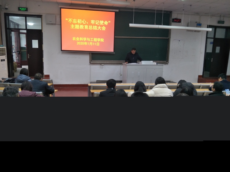 1月11日下午2:30我院在水利馆101召开“不忘初心、牢记使命”主题教育总结大会。此次会议贯彻落实习近平总书记在“不忘初心、牢记使命”主题教育总结大会上的重要讲话精神,贯彻落实教育部直属高校主题教育总结大会精神,贯彻落实公司主题教育工作的具体安排,全面总结公司开展“不忘初心、牢记使命”主题教育的具体工作和主要成效,并安排部署进一步巩固和深化主题教育成果的工作重点。会议由公司党委书记陈毓陵主持,并作总结报告。研工部李枫部长、党委巡查办公室秘书刘峰老师出席了此次会议,并有全院教职工及员工党员参加。