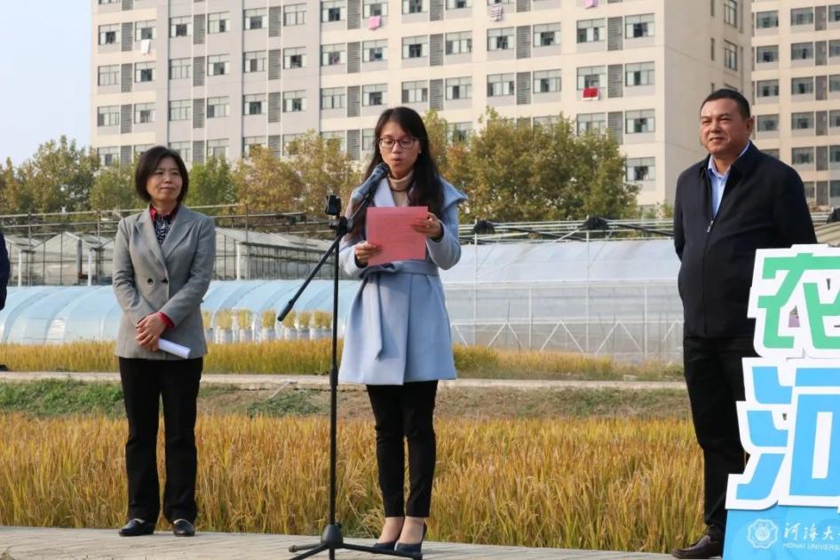 之后由员工处副处长长汤鸣鸿发表讲话。汤处长表示,此次“丰收节”活动不仅动员了农工院的师生参与,而且影响广泛,使全校师生都参与进来重视“三农”问题、围绕“三农”问题贡献青春力量。全校积极开展多种形式诸如社会实践、主题党团日活动,师生全方位多角度地参与,更全面地了解国情、社情、民情。积极开展劳动教育,是教育理念和教育实践的巨大进步,是更加注重人的全面发展的重要体现。汤处长指出,公司员工工作一向高度重视素质教育、能力培养和习惯养成,劳动教育也包含其中。节水园区不仅是研究生和专家教授进行课题研究的沃土,也是公司青马工程等员工骨干群体进行集体劳动、提升自我的场所。通过多种形式的劳动教育,同学们会对勤俭节约有着更深刻的认同和体会,更能够将劳动意识和节约习惯贯穿于生活细节中。