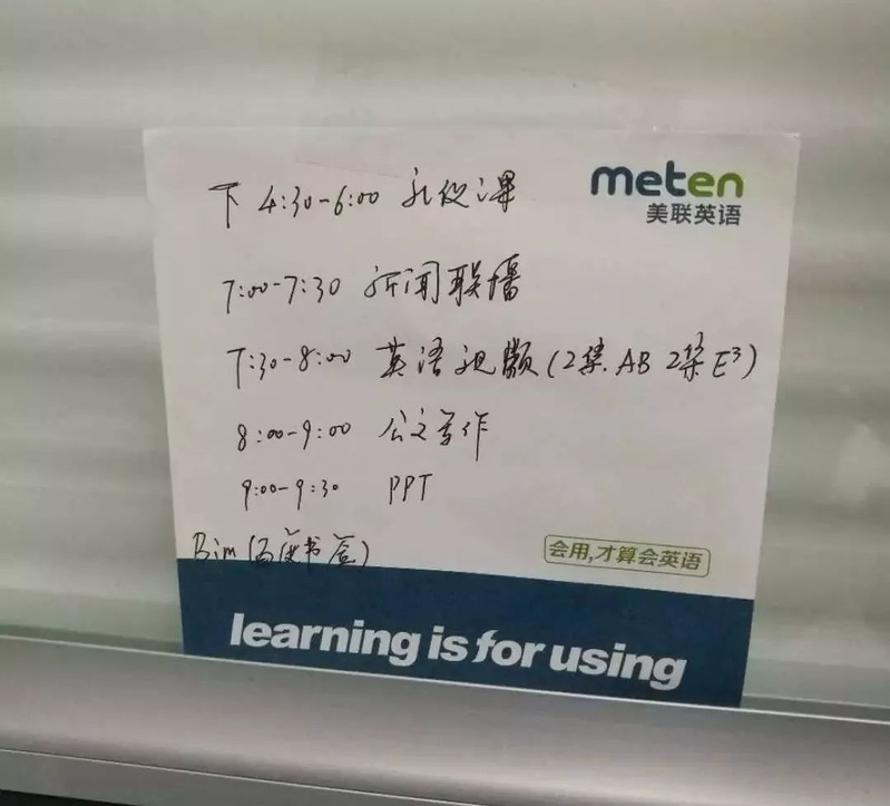 在肖亚楠的书桌上,每天都会贴有一张日程表,具体计划精确到小时。肖亚楠说,这样将每天的任务安排好并将其落实,可以很清醒得明白自己近期的进展以及不足,不至于每天过得盲目而混沌。