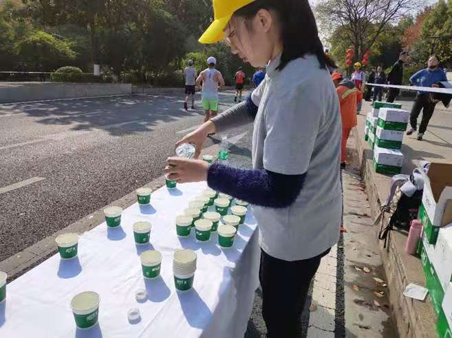 此次参与弥补了她在大学期间因为注重参与环保志愿活动而忽视的一项自己很想参加的活动,研究生也只有她一个人参与,其余都是本科的学弟学妹们,但她在参与活动时并不觉得尴尬,而是在自己的岗位上认认真真做好应该完成的任务,为来来往往的每一位马拉松参赛者加油鼓气。
