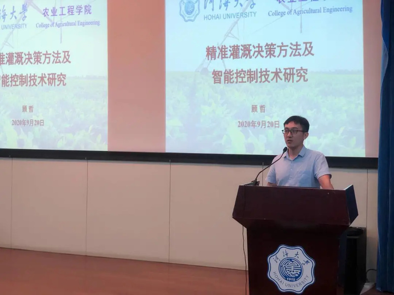 顾哲博士主要从事农业灌溉智能化理论与装备、农田灌溉对温室气体排放影响机理相关的研究工作。本次论坛顾哲博士对精准灌溉决策方法及智能控制技术研究进行报告,主要向大家介绍了他目前正在研究的智慧灌溉。报告结束后,同学们踊跃发言,和顾哲博士进行了深刻地学术讨论。