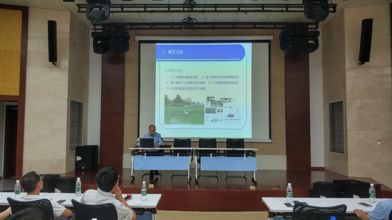 缴锡云教授向大家介绍了智能化灌溉理论与技术创新团队及研究成果,并号召大家立足国情,在人民需要的领域下功夫。