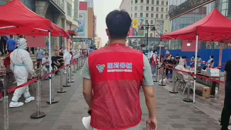 在和平区的检测中,也有许多社区街道、警务人员和医护工作者都是二三十岁左右的年纪,他们共同的特点便是胸前镰刀和锤头构成的党徽。