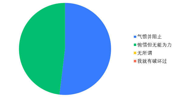 3、近一半的人表示在发现红色革命遗址遭到破坏时会上前阻止,而另一半人虽知道破坏红色革命遗址的行为是不对的,但是不知道如何去正确制止这种行为。
