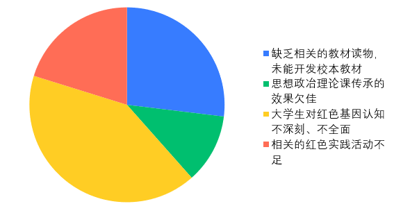 5、大部分的人认为,当代青年思想政治教育传承红色基因的过程中最大的问题是老员工对红色基因认知不深刻不全面,有部分人认为缺乏相关的教材读本,也有人认为思想政治课效果欠佳与红色实践活动不足。