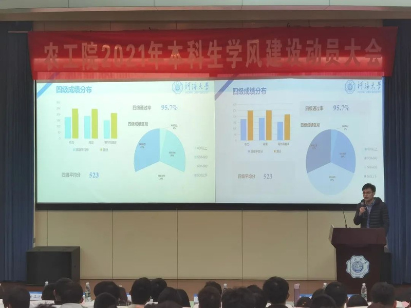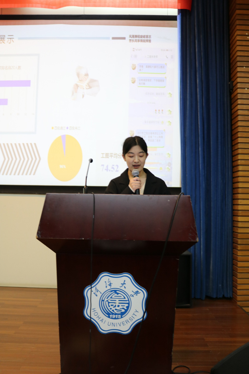 学风建设的各项举措关键要靠各个班集体去推进落实。随后,2020级农水二班员工代表祝嘉宁同学、农水四班员工代表陈可悦同学分别上台对本班优良学风班创建方案进行介绍与展示交流,他们的分享中既有切实可行的推进举措,更有进一步加强班级学风建设的决心。