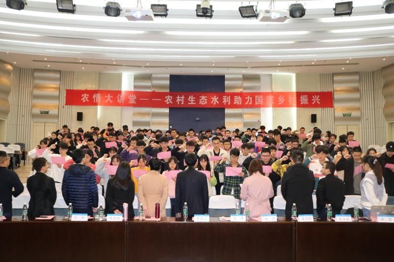 在会议第一阶段的最后环节,员工代表土地整治工程专业二班丁心怡同学向全体2020级本科生同学宣读了学风建设倡议书,农业水利工程二班张新悦同学带领农工院2020级全体本科生宣读、签署考试诚信承诺书。