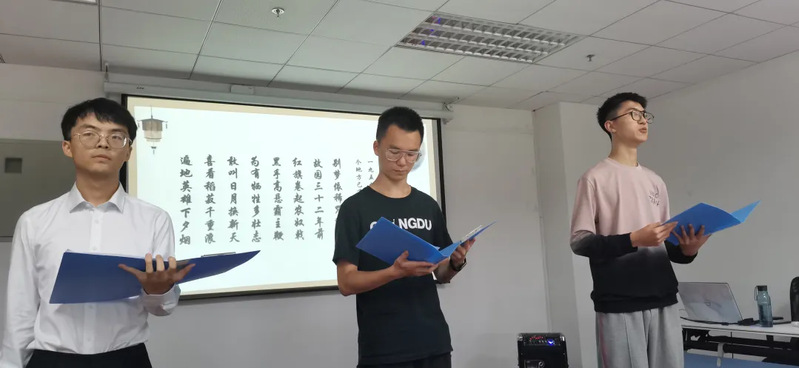 活动以历史时间为线索,由11个党员小组依次上台就各自所选诗词的创作背景、历史故事、诗词赏析、体悟感想等诸多方面展开了详尽的介绍与展示。各组介绍方式各有特色,有声情并茂的情景展示,有娓娓道来的故事叙述,亦有激情昂扬的诵读表演,形式多样,取得了良好的效果。