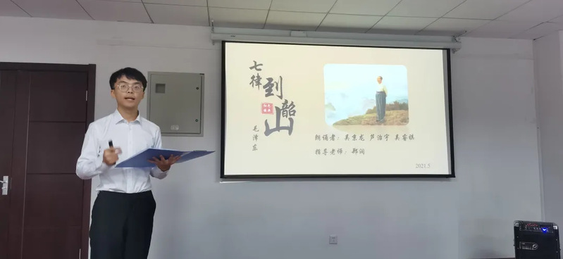 5月9日下午,公司本科生党支部于行政楼401会议厅开展了毛泽东诗词鉴赏与诵读活动。公司党委副书记、院本科生党支部书记郑润参加活动。活动由本科生党支部成员吴京龙、祝小福主持。