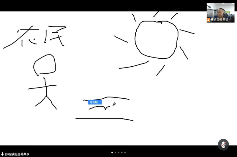 班会伊始,班导马韬老师以轻松诙谐的自我介绍调动了会议的气氛,同学们纷纷打消了内心的紧张与羞涩,开启麦克风相互交流。随后,在马韬老师的安排下,农水二班全体同学按照顺序,依次展示了自己提前准备好的自我介绍材料,从家乡风情,到兴趣爱好,本素不相识的大家遇到并熟识了即将携手相伴四年的前路知己。随后,农水二班的同学们开展了“你画我猜”的游戏环节,在班导师和助学导师的安排下,大家绞尽脑汁,使出浑身解数,只为猜出作画者笔下的“神秘画作”。最后,农水二班第一次班会在大家为班导师诚挚献上的教师节祝福中落下帷幕。