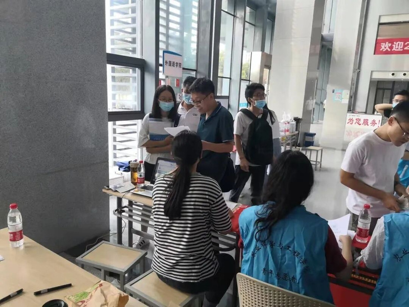 9月25日,研究生新生入学报到在行政楼1楼正式开始,研究生辅导员曾欣老师和20级研究生同学引导新生进行报到注册。