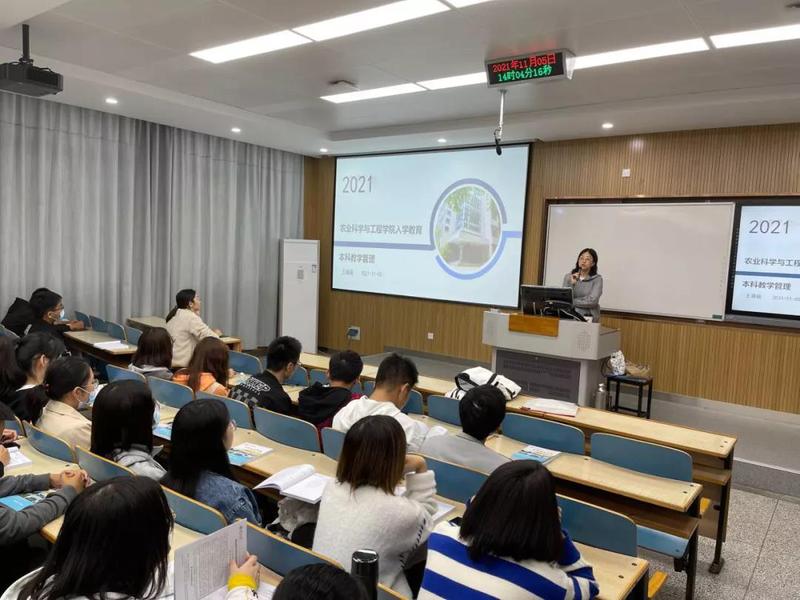 2021年11月5日,农工院教学秘书王薇薇和辅导员薛璟在致用楼为21级新生开展入学教育。