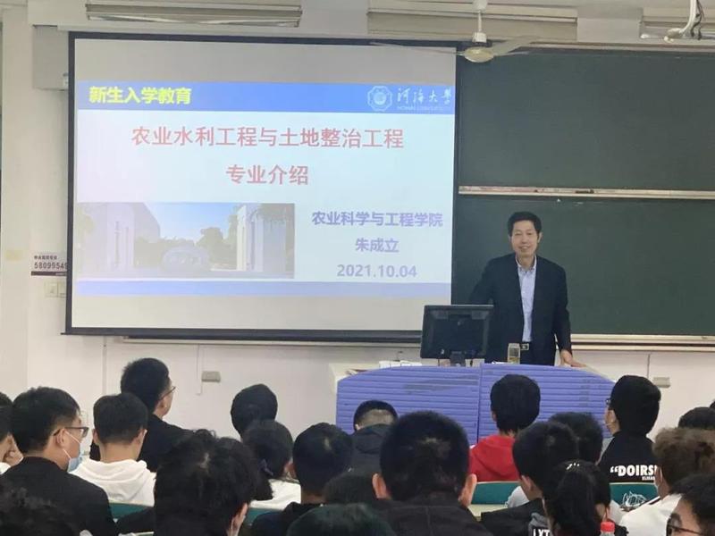 之后,朱成立教授对大家进行了专业教育。在专业教育会上朱成立教授为员工们讲解关于农业水利专业和土地整治专业方面的知识,通过为员工们介绍农工院毕业的员工以及他们的工作方向、工作职务等方面,让员工更能容易理解自己专业的知识及专业特点,以及未来的就业方向。