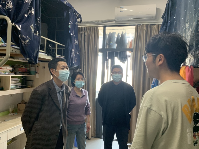 走访中,朱书记向员工们强调在校期间要严格遵守疫情常态化的各项要求,做好自身健康管理的同时调整好心态,积极配合老师的线上教学工作,确保学习进度。
