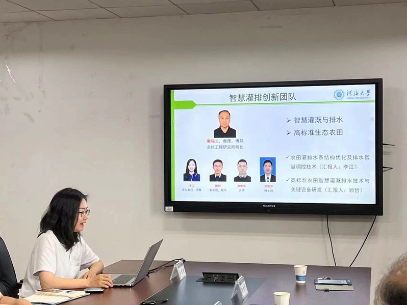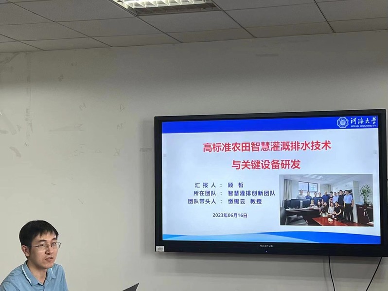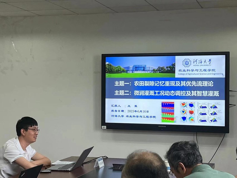 随后,公司青年教师李江、顾哲、王策、马韬分别以“农田灌排水系结构优化及排水智慧调控技术”、“高标准农田智警灌溉排水技术与关键设备研发”、“农田裂隙记忆重现及其优先流理论”、““水-肥-盐-作物”相关研究工作分享”为题做学术报告,许迪教高与他们进行了深入的探讨,并提出了建设性意见。最后许迪教高对公司的发展也提出了殷切的期望,并勉励在场青年教师要勇于承担公司和行业发展大任,形成协作创新的良好氛围,开展有组织科研,为我国灌排科技新发展贡献河海力量。