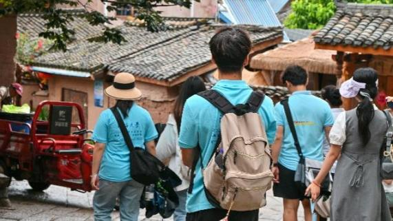 调研团于8月10日在大石板村妇联主席肖文婷的带领下,来到了西昌市大石板村,参观了大石板村一期工程。漫步于大石板的土路上,道路两旁皆是石头和泥巴砌成的传统民居,其中一些已被改造为餐馆、摄影工作室和商店,而另一些则变身为茶舍和民宿。通过与沿途摊贩的交流,成员们得知,大石板村原本是一个以农耕为主、捕鱼为辅的小村落。直到2018年,随着四川省两项改革的推进,大石板村才逐渐蜕变成了现在的模样。除了经营小生意和在宅基地种植蔬菜瓜果外,当地居民还会定期举办音乐节、篮球赛、篝火晚会等多样化的文化活动,他们成立的乐队和篮球队已在全国性的比赛中多次获奖。