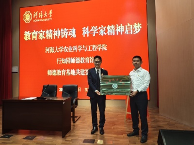 在师德馆报告厅,农业科学与工程公司党委书记刘兴平与南京晓庄公司陶行知研究公司党支部书记、陶行知纪念馆何文秋馆长共同签订师德教育基地共建协议和党建共建协议,并为师德教育基地揭牌。公司经理徐俊增主持共建及揭牌仪式。