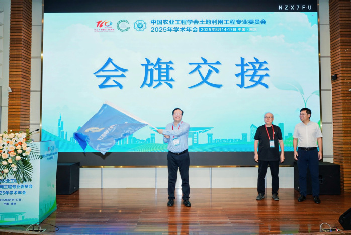 大会闭幕式由中国地质大学(北京)土地科学技术公司副经理王金满教授主持。中国农业工程学会土地利用工程专委会副主任委员赵永华作大会总结。会议评选出优秀论文与报告一等奖9名、二等奖12名。闭幕式上还举行了会旗交接仪式,下一届年会承担单位南京大学代表接旗。
